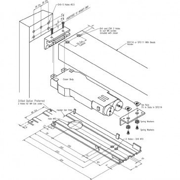 The transom overhead door closer is designed to be concealed within the transom header bar of the door. It provides controlled closing of a single or double action aluminium door or doors.
