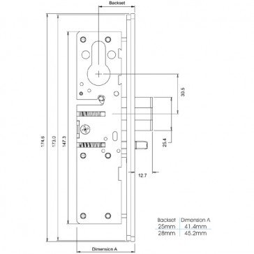 Industry standard ANSI cut outs. Euro profile, cylinder options. Latch hold back facility. Non handed reversible in the field.