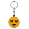 Quality gloss enamel emoji key rings – card of 12. Emoji include hearts, shades, smiley, cheeky, kisses, tears, poop and monkey.
