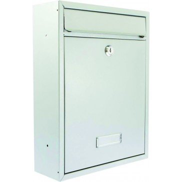 PBX055 BURG WACHTER MB19S TRENT POSTBOX SILVER • Ideal for fixing against a wall, gate or fence,with the fixings included in the box • Drop front opening to access mail and top opening letter flap for improved weather protection • Perfect for grouping together for banks of post boxes (apartment buildings, commercial use etc.) • Accepts envelopes up to a size of C4 (275mm W x 35mm H) • Material: Steel