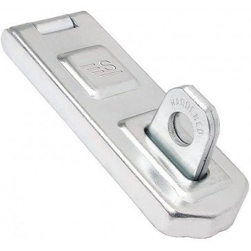 Corrosion resistant zinc plating. Hardened steel staple. Hardened steel hinge pins and link. Concealed hinge pins and fixings. Screws supplied or screws and bolts supplied (depending on size). Tough steel construction. Available in two different sizes