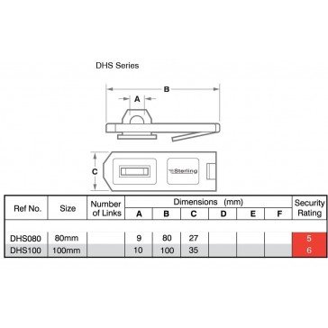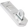 Corrosion resistant zinc plating. Hardened steel staple. Hardened steel hinge pins and link. Concealed hinge pins and fixings. Screws supplied or screws and bolts supplied (depending on size). Tough steel construction. Available in two different sizes