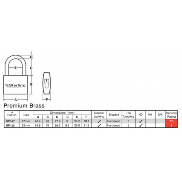 Premium brass padlock with chrome plated body. Double ball bearing locking mechanism. Hardened steel chrome plated shackle. Supplied with removable modified euro cylinder (35mm half of double cylinder). Suitable for all quality branded euro cylinders. Key retained in unlock position.