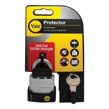Yale hardwearing Laminated Steel body construction with anti corrosion internal components, ideal for outdoor use. Boron shackle for maximum security. Size: 55mm Double locked for added security. | – Tested to EN12320:2012 to simulate extreme forms of attack (cutting, pulling, twisting of the shackle). – Tested up to 120 hours for corrosion resistance to protect against extreme weather conditions. – Tested to 10,000 cycles (opening and closing) for optimum performance.