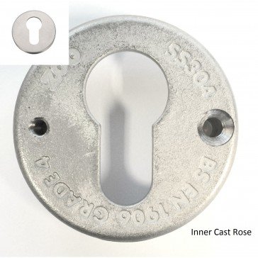 BS EN 19.6:2010 Grade 4. Sold as a pair with stainless steel cast inner rose. 52mm push on cover rose and fixings supplied. Rose diameter 52mm, projection 8mm, 304 grade material, push on stainless steel outer rose, fire tested suitable for 30 & 60 minutes (timber doors)