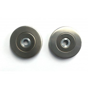Pack of 2 roses designed to convert any Zoo 19mm or 22mm diameter stainless steel D handles from a rear bolt fix to a face fix. Supplied with fixings. 52mm diameter x 8mm deep roses with push on rose.